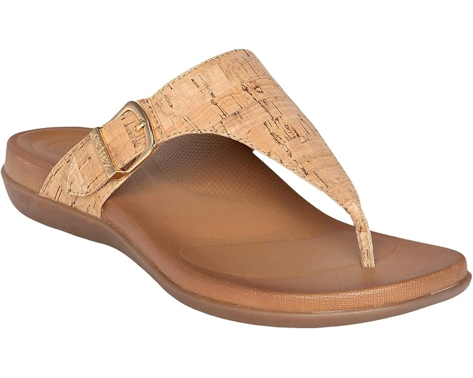The aetrex® Rita Thong Sandals provide all-day comfort and support and are easy to clean and wear, perfect for getaways and relaxing on weekends.SKU: #9359066Aetrex® arch placement may feel a bit further back, this position is proven to help relieve heel/arch pain & plantar fasciitis. This arch placement is backed by research, Dr. recommended and customer approved.aetrex® Orthotic System provides arch support that helps stabilize and align the feet, and assists at relieving common foot pain.Durable synthetic and leather upper with an adjustable hook-and-loop strap.Lightweight UltraSKY™ injected EVA foam midsole delivers increased cushioning and shock absorption for durable, long-lasting comfort.Contoured footbed cradles the heel to relieve pressure and increase comfort.Synthetic-leather outsole provides durable grip and traction.Imported.Weight of footwear is based on a single item, not a pair.