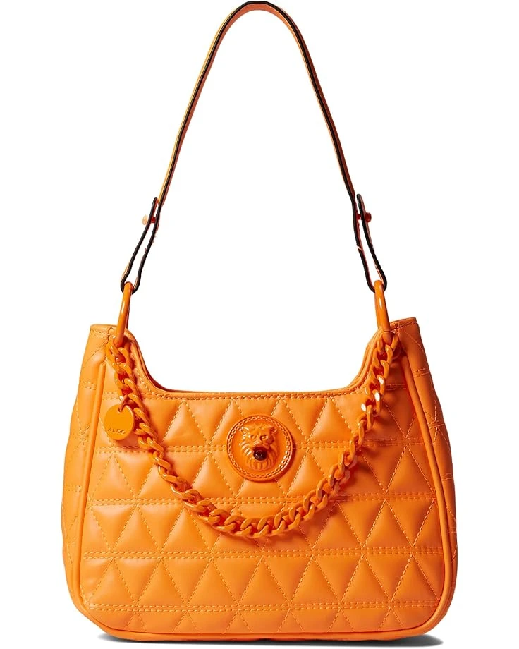 One internal zipper pocket.Top carry strap.Painted metal chain with brand logo dangle.Allover puffer patterns.Lion head applique.Recycled polyurethane terephthalate lining.Imported.Measurements:
