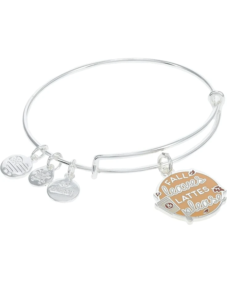 Embrace the fall season wearing the elegant Alex and Ani® Fall Leaves and Lattes Please Bracelet.SKU: #9820370Silvertone metal construction. Charm features the motto “Fall Leaves & Coffee Please” printed on the front. Sliding adjustment clasp.Made in the USA.Measurements: