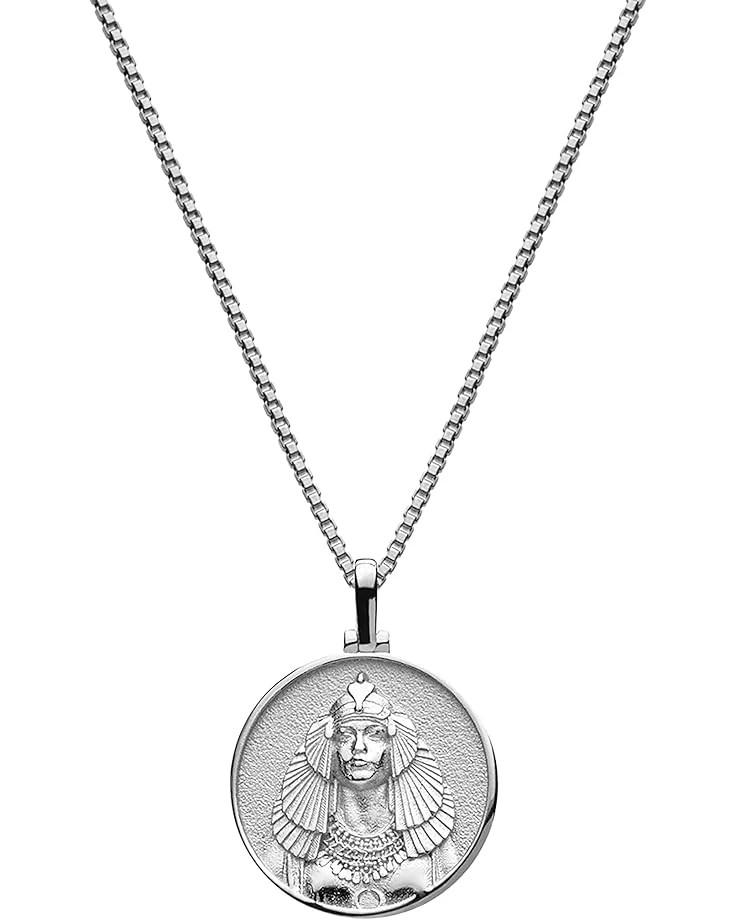 The most magnificent embodiment of the female force if there ever was one, Cleopatra queen of the Nile took the throne of Egypt from her husband-brother at the age of 18. She was worshipped for her power moves like these. Notoriously bewitching both roman emperor Julius Caesar and his top general Mark Antony.SKU: #982398220% of all proceeds go to awe inspired’s charity partners.Lobster clasp closure.Sterling silver.Avoid using any type of jewelry cleaner, soap, or other cleaning agents. Take off your jewelry when bathing, showering, or swimming. Avoid exposure to salt water or chlorine. Polishing cloths containing any rouge should not be used. Store your jewelry in your awe pouch between wears.Made in Italy.Measurements: