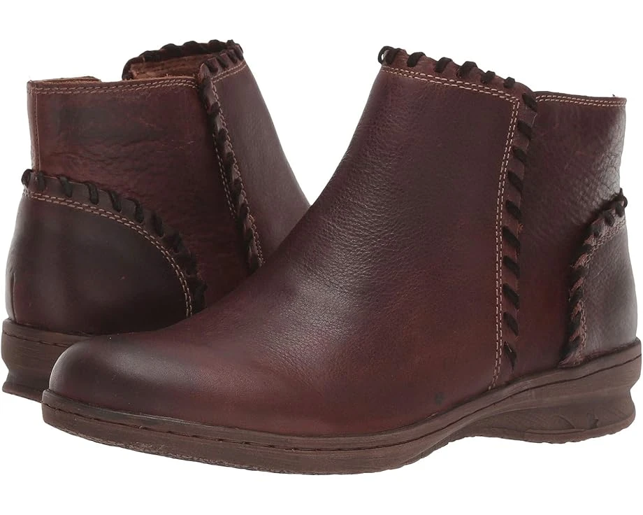 The Comfortiva® Fallston bootie offers a rich leather design and artisan details that will make it a standout style this season. SKU: #9275962Full grain leather upper with round toe.Features leather lacing detail for added style. Inside full-length zipper closure. Breathable microfiber and synthetic lining. Pillowtop® memory foam footbed with soft microfiber topcover for all-day comfort. Low rubber heel. Slip resistant and flexible TPR outsole.Imported.Product measurements were taken using size 10, width M (B). Please note that measurements may vary by size.Measurements: