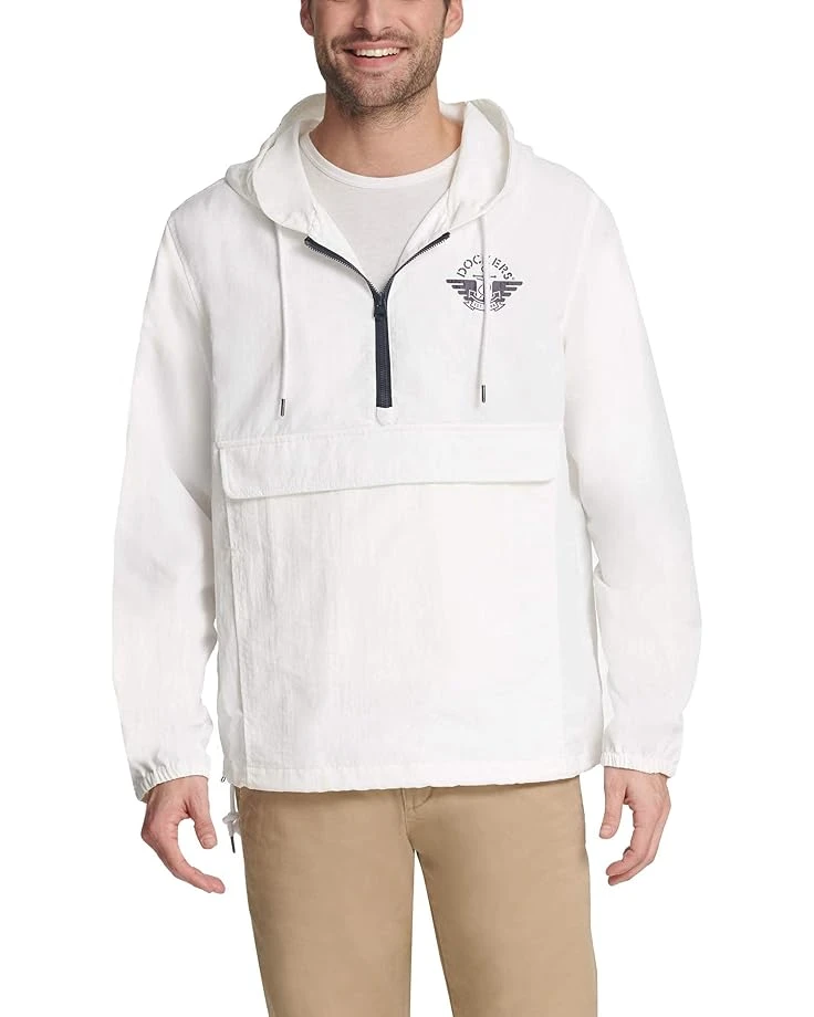 100% NylonSKU: #9640659100% CottonChinaMachine WashLightweight hooded popover in a water resistant nylon taslanLightweight hooded popover in a 100% cotton Chambray shell fabricOne center flap pocket with welt opening and two lower side pocketsCenter front half zip and adjustable zipper detail on right side seamInternal draw cord at waistband and elastic cuffsDockers signature anchor logo on left chest