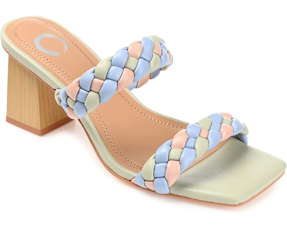 SKU: #9818670Man-made upper construction.Man-made lining.Comfortable foam foot bed.Open toe square silhouette.Double straps.Block heel.Slip on style.Man-made outsole.Imported.Measurements: