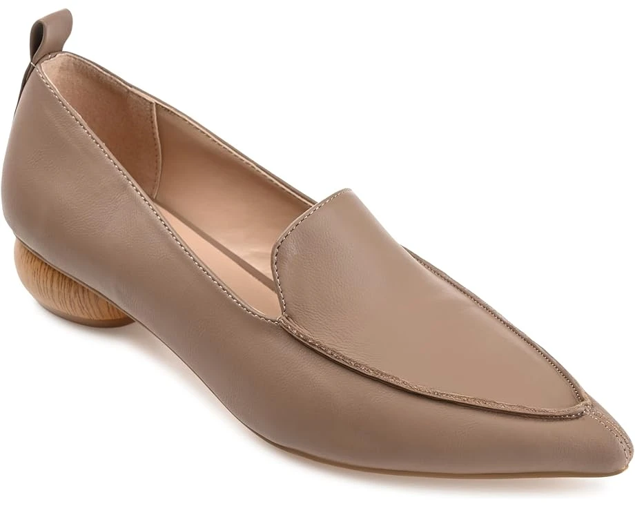 Enhance your casual style by opting for the Journee Collection® Maggs Flats.SKU: #9859631Faux leather upper. Faux leather lining and a soft, padded footbed. Pointed toe silhouette with twin notches detail. Faux wood, circular-shaped block heel. Pull tabs for easy on and off. Easy slip-on style. Durable man-made outsole. Imported. All measurements are approximate and were taken using a size 6. Please note measurements may vary slightly by size.