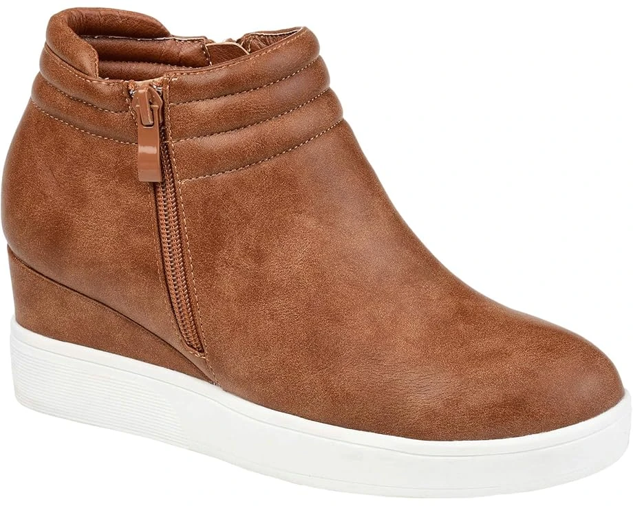 Trendy and stylish is the Journee Collection® Remmy sneaker! This fabulous sneaker wedge will be your go-to athleisure style from now on. This style features a dual zipper detail with a tri stitched design at the ankle. This comfy sneaker wedge is completed with a round toe shape.SKU: #9501628Faux leather upper. Lightly padded insole.Imported.