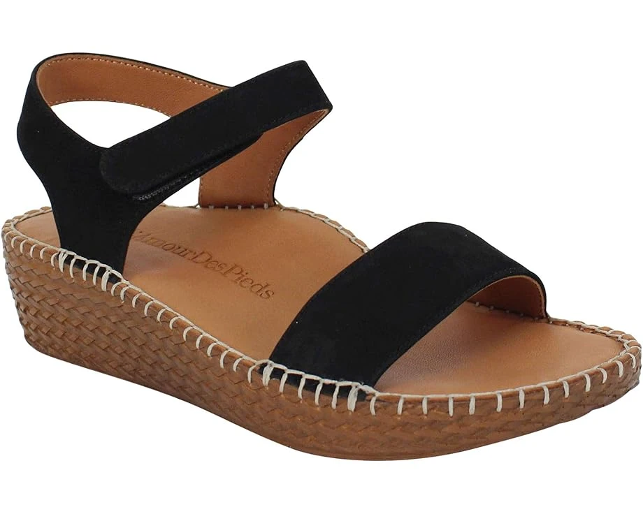 Step into warm-weather comfort with the L’Amour Des Pieds® Yanis sandal. With an open design and subtle wedge heel, you’ll slip into the summer feeling with ease and style.SKU: #9570336Hook-and-loop closure.Leather upper features slingback strap, with adjustable ankle strap and a strap across the vamp.Soft leather lining and padded insole provide comfort for continued wear. Contrast handstitched detail around the insole.Open, round toe with woven wedge heel.Textured synthetic outsole offers grip and stability.Imported.