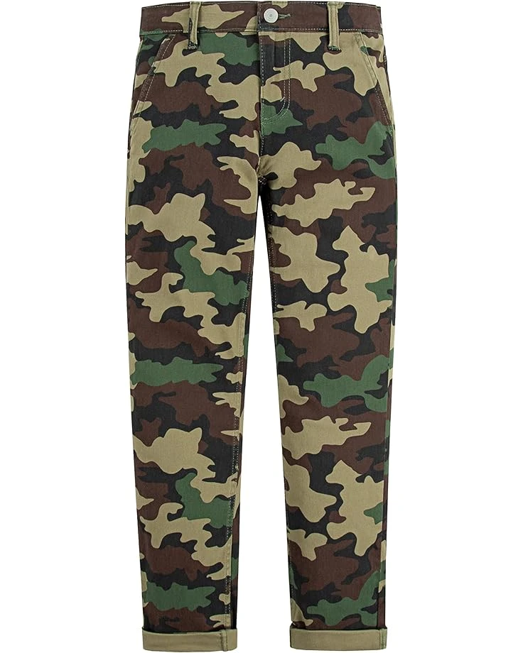 Levi’s® brings you the Kids 502 Regular Taper Fit Chinos featuring a regular fit and an allover printed design, that pairs well with all kinds of outfits.SKU: #9627072Belt loop waist with buttoned front and a zip-fly closure.Two front pockets, and two back pockets.Ankle-length construction.98% cotton, 2% elastane.Machine washable.Imported.