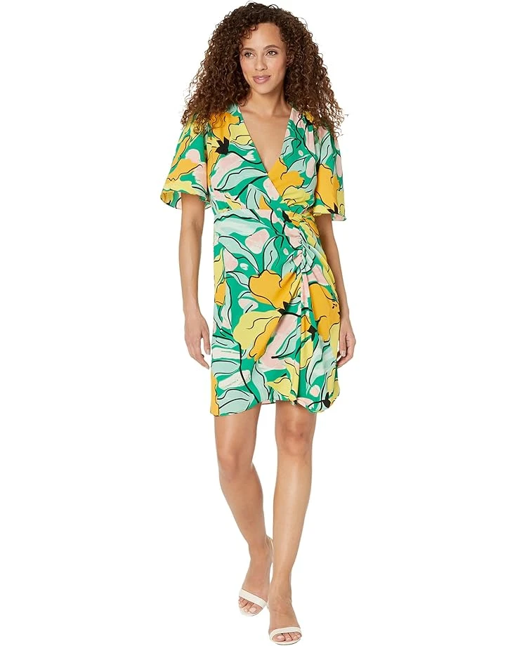 Add a playful touch to your look by wearing the Maggy London™ Flutter Sleeve Printed Mini Dress.SKU: #9803032Midi-length dress. Pullover style. Allover multicolored abstract print. V-neckline and short flutter sleeves. Cinch waist for a snug fit. Straight hemline. 97% polyester, 3% spandex. Machine wash, line dry.Imported. Product measurements were taken using size 4. Please note that measurements may vary by size.Measurements:
