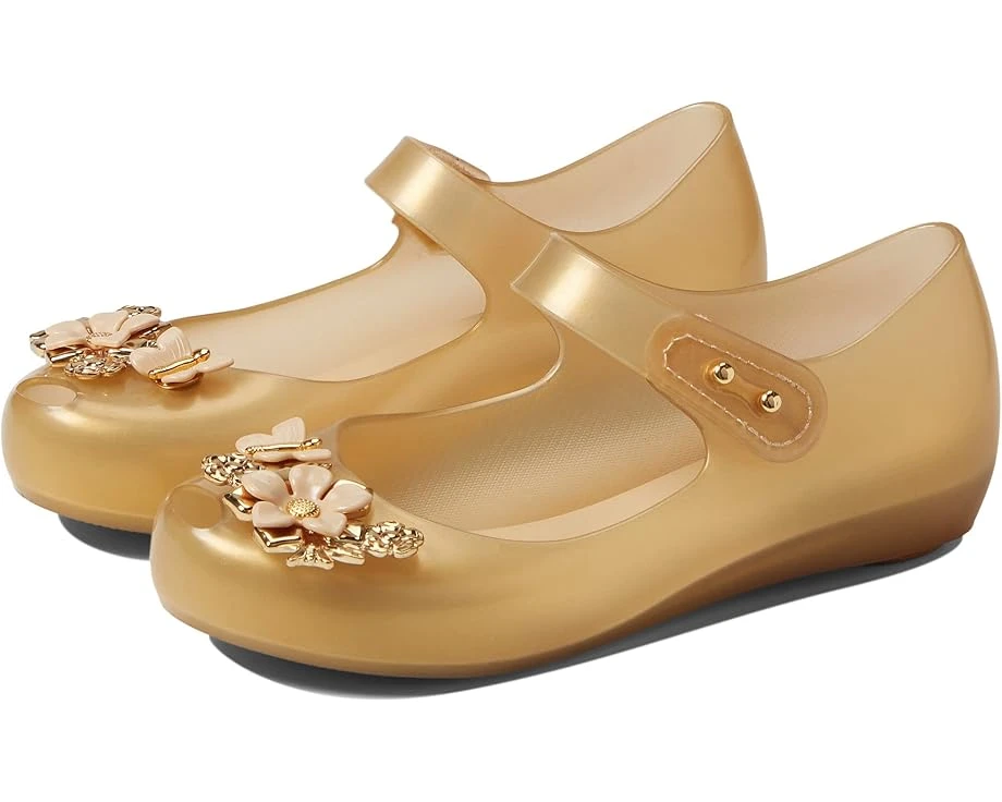 Embrace your little ones fairy look with Mini Melissa® Ultra Chrome Flower BB footwear.SKU: #9806913Synthetic upper.Synthetic lining and insole.Slip-on style.Hook-and-loop strap closure with faux pins.Round-toe design.Stud detailing on toe post.Brand logo on bottom outsole.Synthetic outsole.Made in Brazil.Product measurements were taken using size 12 Little Kid, width M. Please note that measurements may vary by size.Measurements: