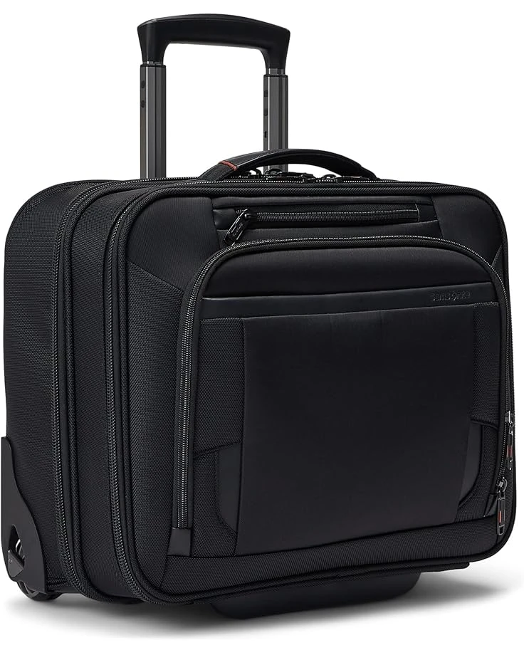 Easily carry your essentials in style with the Samsonite® Pro Upright Mobile Office.SKU: #9817545 Wireless Charging Pocket: Designed to fit your wireless battery and most phones for effortless charging on the go. Power bank sold separately.Cord Management: Detachable cord pouch for easy tech cord organization. RFID Pocket: Safeguards your travel essentials from identify theft.Tablet Sleeve: Dedicated tricot lined padded tablet sleeve.Fast Fit: Effortlessly adapt the laptop compartment size allowing for the perfect fit and worry free travel.USB Port: USB power connectivity (integrated USB socket).Large Main Compartment: Main compartment opens separate to business compartment for privacy and to lay flat for easy packing and unloading.SmartSleeve™: Fits over most upright luggage handles for easy mobility.Main compartment is outfitted to accommodate clothing, shoes and garment straps to secure clothing. Leather touch points on handles and front accent panel. Samsonite V-Track Wheel system.Updated robust handle trimmed in gunmetal finish.Nylon construction.Imported.This product may have a manufacturer’s warranty. Please visit the manufacturer’s website or contact us at [email protected] for full manufacturer warranty details.Measurements: