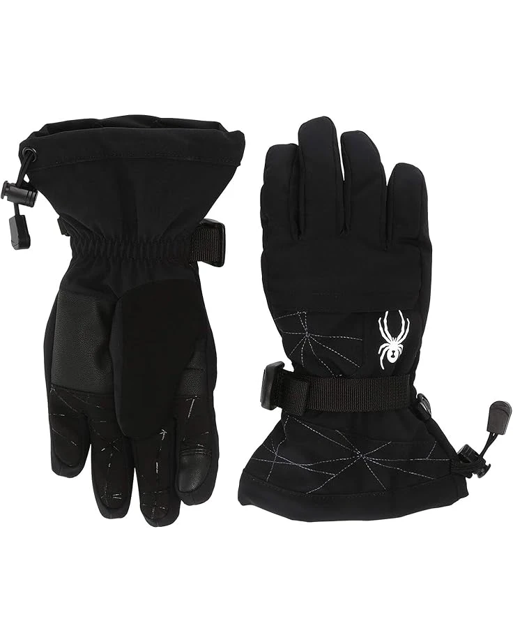The waterproof Spyder® Kids Overweb (Little Kids/Big Kids) gloves will give you the protection you need to tackle the wind and snow. These full-coverage gloves are designed with a seam-sealed softshell featuring a 10K laminate Repreve® finish.SKU: #9246507Slip-on construction is designed with 100g. of PrimaLoft® insulation. Anatomical five-finger design features an adjustable gauntlet and a toggle closure at the cuff. A textured grip palm with a thumb cloth.100% polyester.Hand wash, dry flat. Imported.