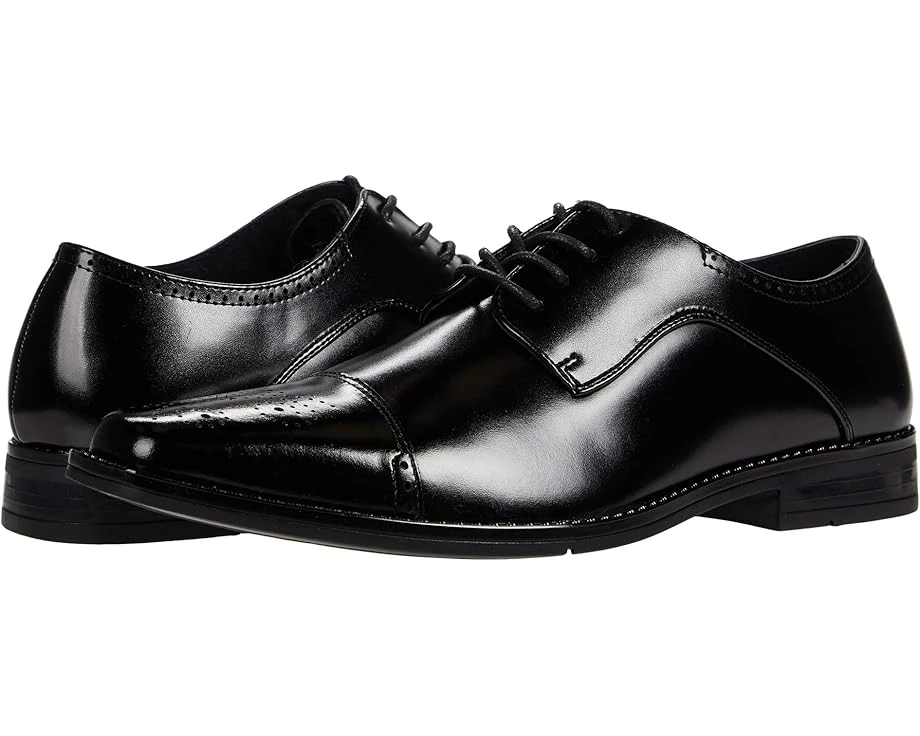 The Stacy Adams® Kenway Cap Toe Oxford achieves contemporary sophistication with a smooth leather upper, a squared cap toe, and brogue perforations at the toe and collar.SKU: #9447462Lace-up construction offers a secure fit.Breathable leather lining.Fully cushioned insole provides long-lasting comfort.Low stacked heel.Durable rubber outsole. Imported.Product measurements were taken using size 9, width D – Medium. Please note that measurements may vary by size.Weight of footwear is based on a single item, not a pair.Measurements: