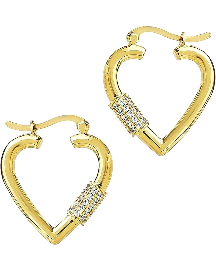 Sterling Forever CZ Heart Carabiner Lock Hoops Earrings