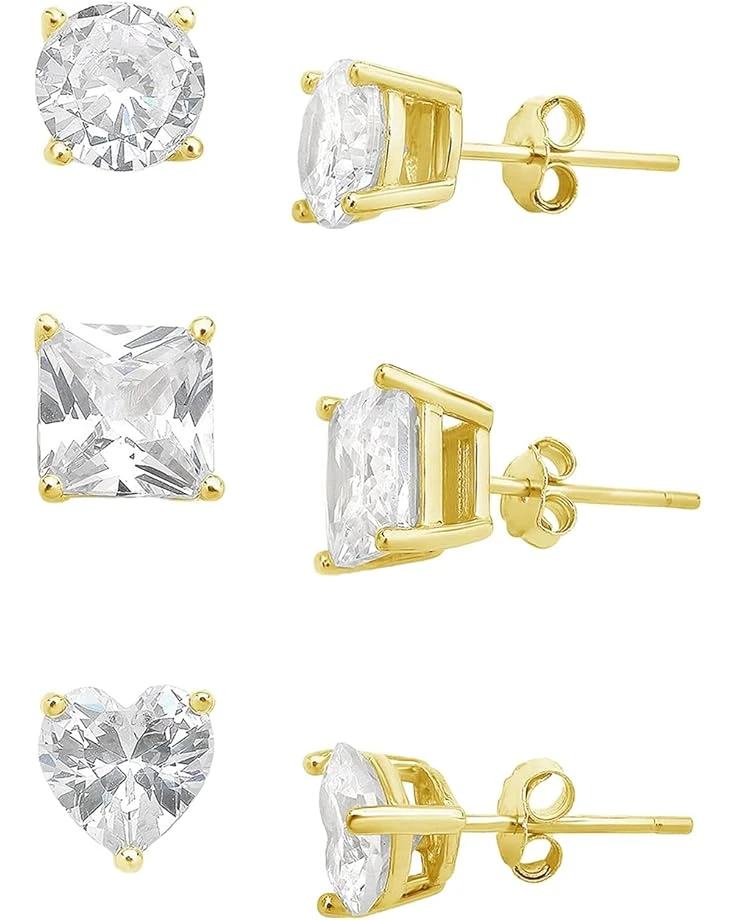 In multiple shapes for every occasion, the Sterling Forever Sterling Silver Statement CZ Stud Set of 3 Earrings are a shining staple to have in your collection.SKU: #9597191Featuring cubic zirconia circle studs, square studs, and heart-shaped studs.Gold or silver-plated brass posts and backings.Lead and nickel free.7mm studs.Keep away from water and chemicals for optimal wear and storage.Imported.