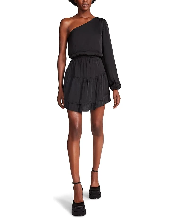A one-shoulder design accentuates the look of the versatile Steve Madden® Zinnia Dress. SKU: #9849418One-shoulder long sleeve.Cinched waist detailing.Ruffle detailing towards the bottom.Tiered A-line skirt.Intended to hit at the thighs.Pull-on style.100% polyester.Hand wash, lay flat to dry.Imported.