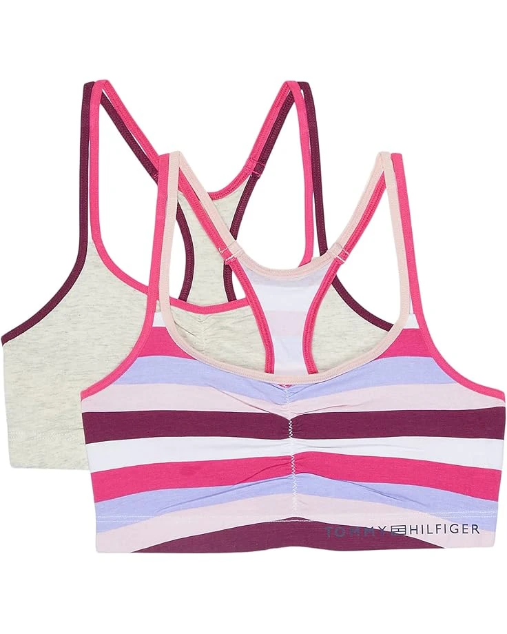 Enjoy the total comfort wearing the Tommy Hilfiger® Kids Multi Stripe 2 Strap Tommy Bra 2-Pack. SKU: #9827823Scoop neckline with adjustable straps. Logo elastic band.Pullover style.Adorned with multicolor pattern. 95% cotton, 5% spandex. Machine wash, tumble dry. Imported. Product measurements were taken using size Medium (8-10 Big Kid). Please note that measurements may vary by size.If you’re not fully satisfied with your purchase, you are welcome to return any unworn and unwashed items with tags intact and original packaging included.Measurements: